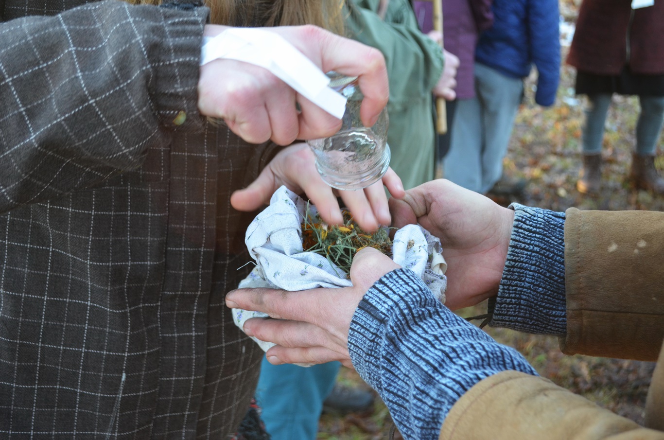– dary předkům, drobné dary ohni (své výpěstky ze zimní zásoby, byliny, ořechy, černý chléb, …)